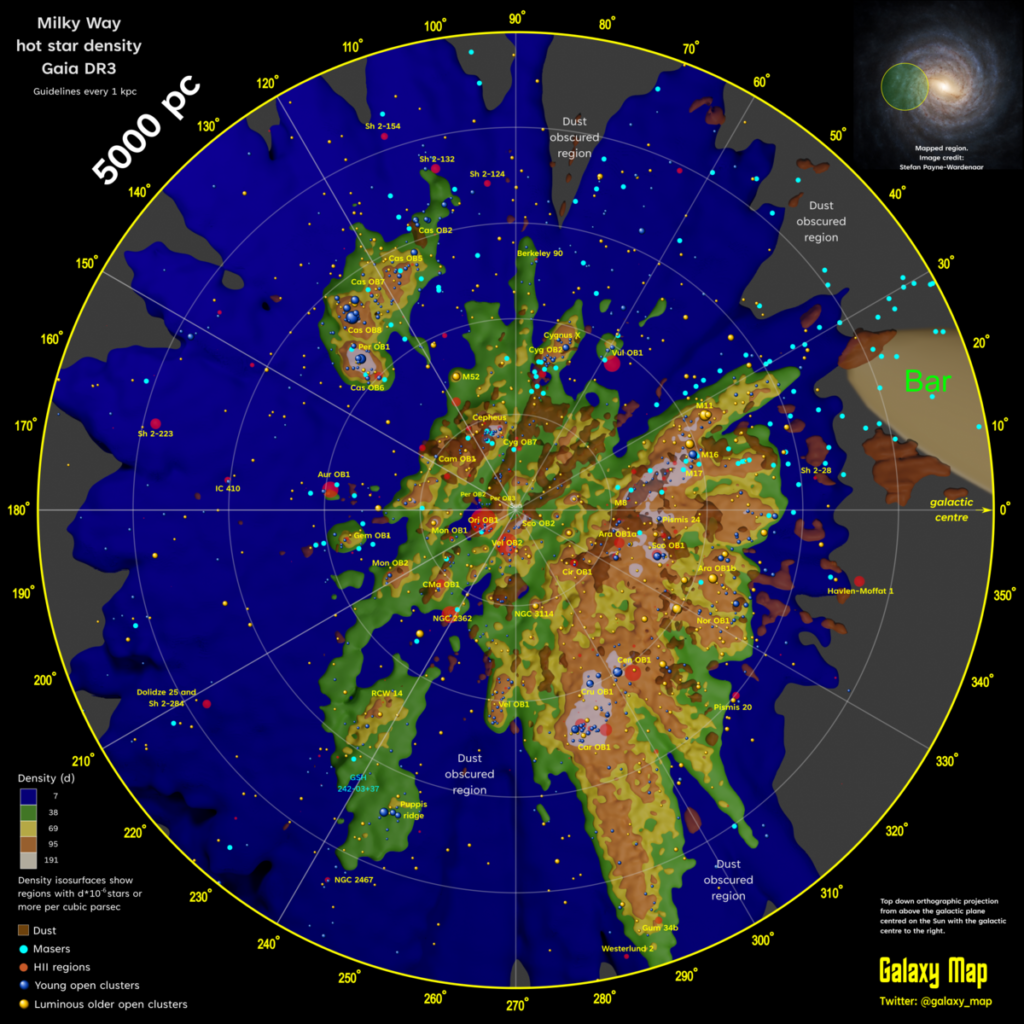 حباب محلی درون کمربند گولد واقع شده است که یک حلقهی جزئی از ستاره ها در کهکشان است، وسعت آن 3000 سال نوری میباشد و با مسیر حرکت کهکشان حدود 18 درجه زاویه دارد، ناحیهی قرمز در تصویر بخشی است که حباب محلی در نزدیکی آن قرار دارد