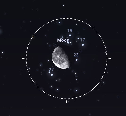 طلوع ماه در پروین؛ شهریور 1404 – تصویر از Stellarium
